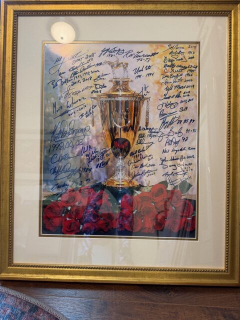Absentee bidding will also be taken on a framed photograph of the Kentucky Derby trophy signed by 32 Kentucky Derby-winning jockeys and 14 winning trainers. Bidding on the item will start at $2,500.